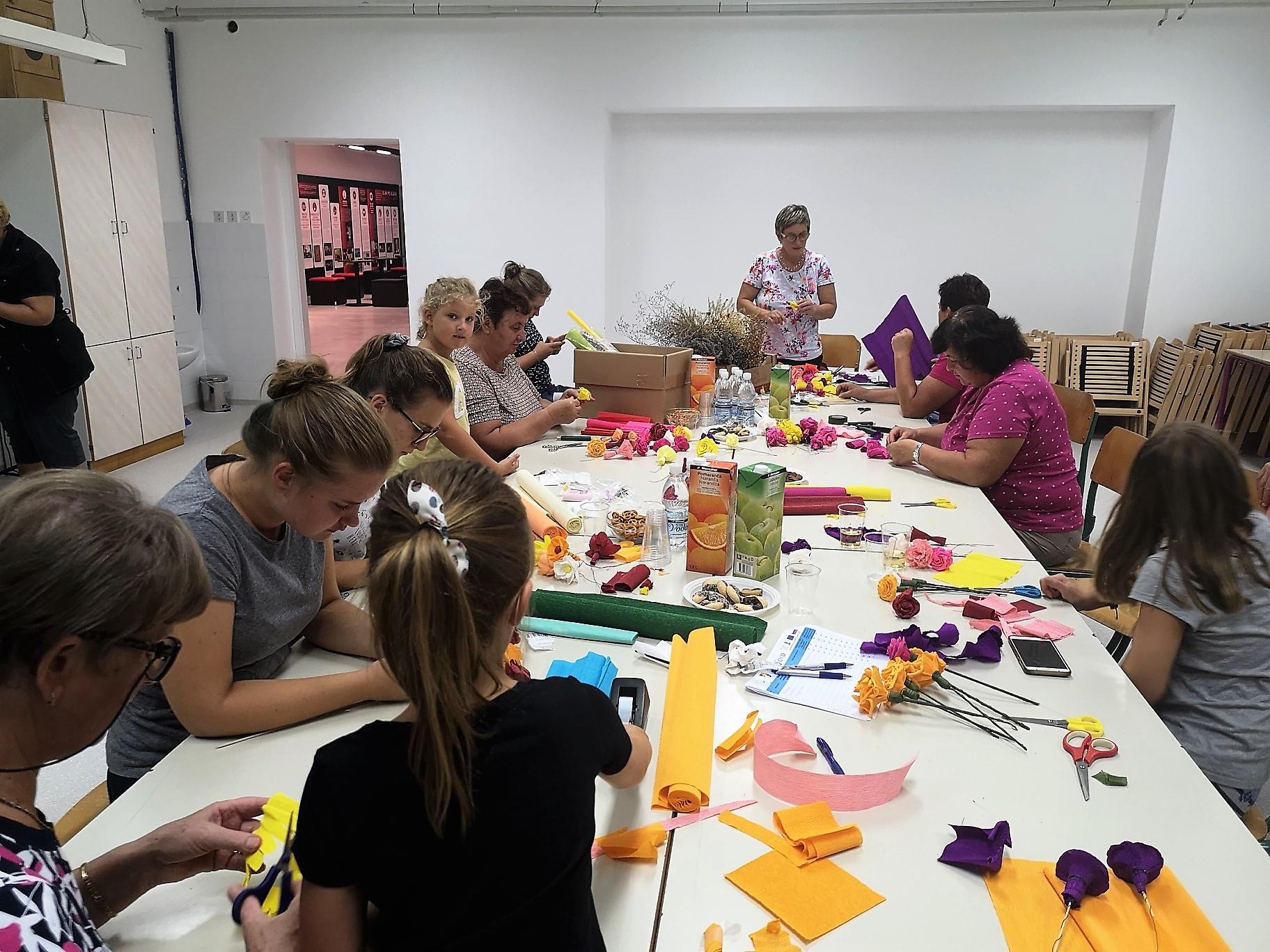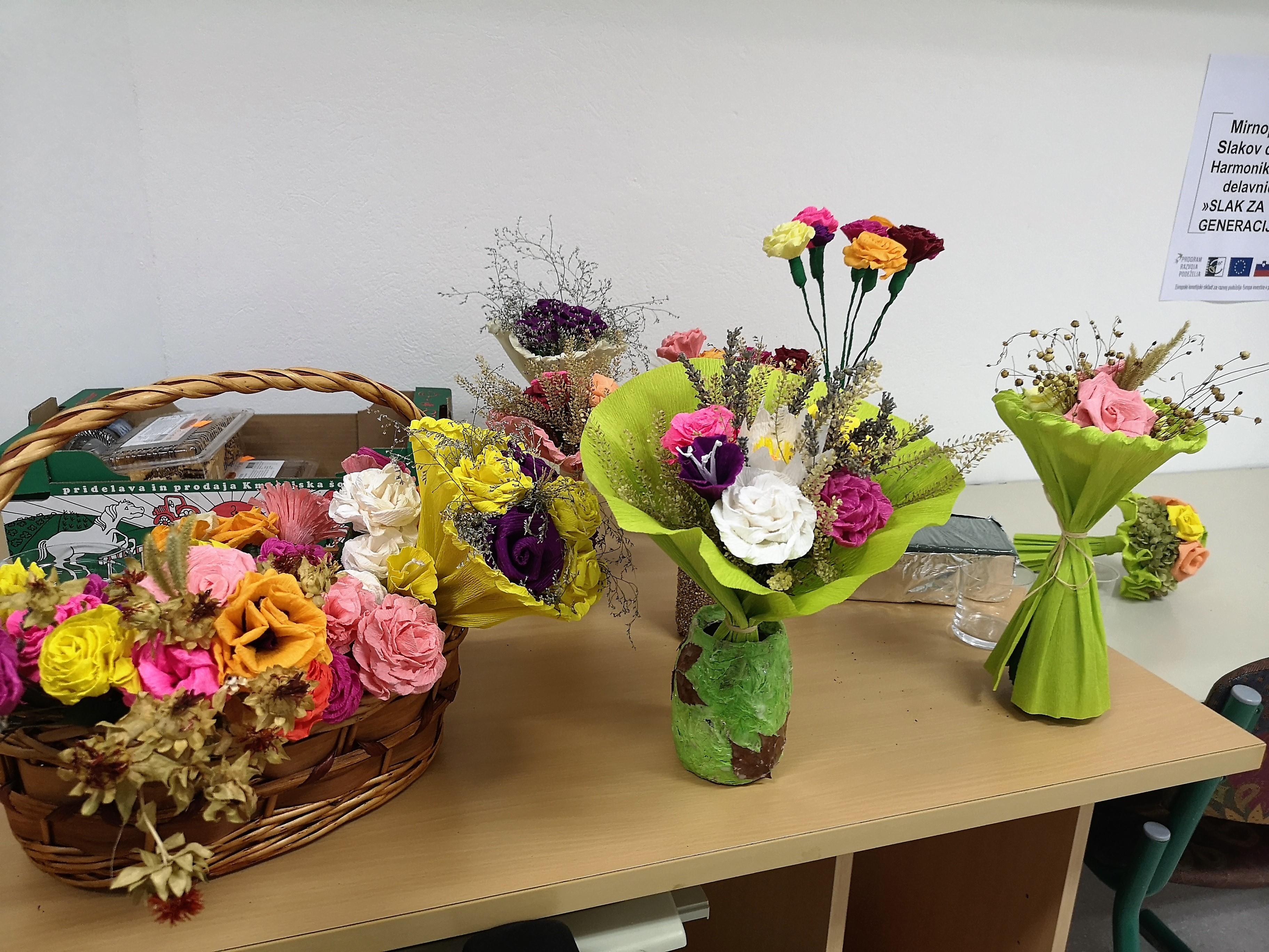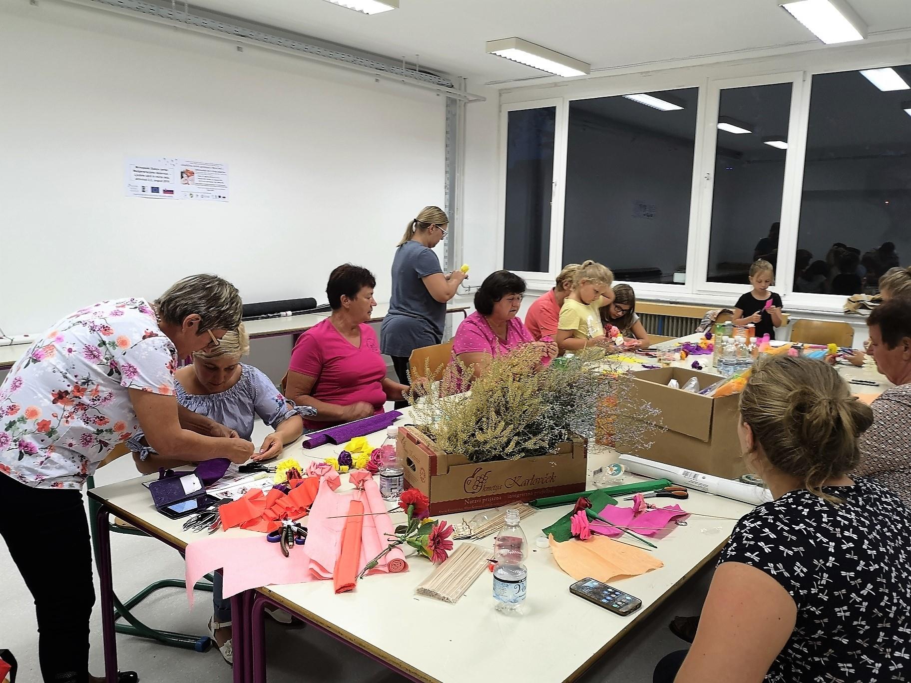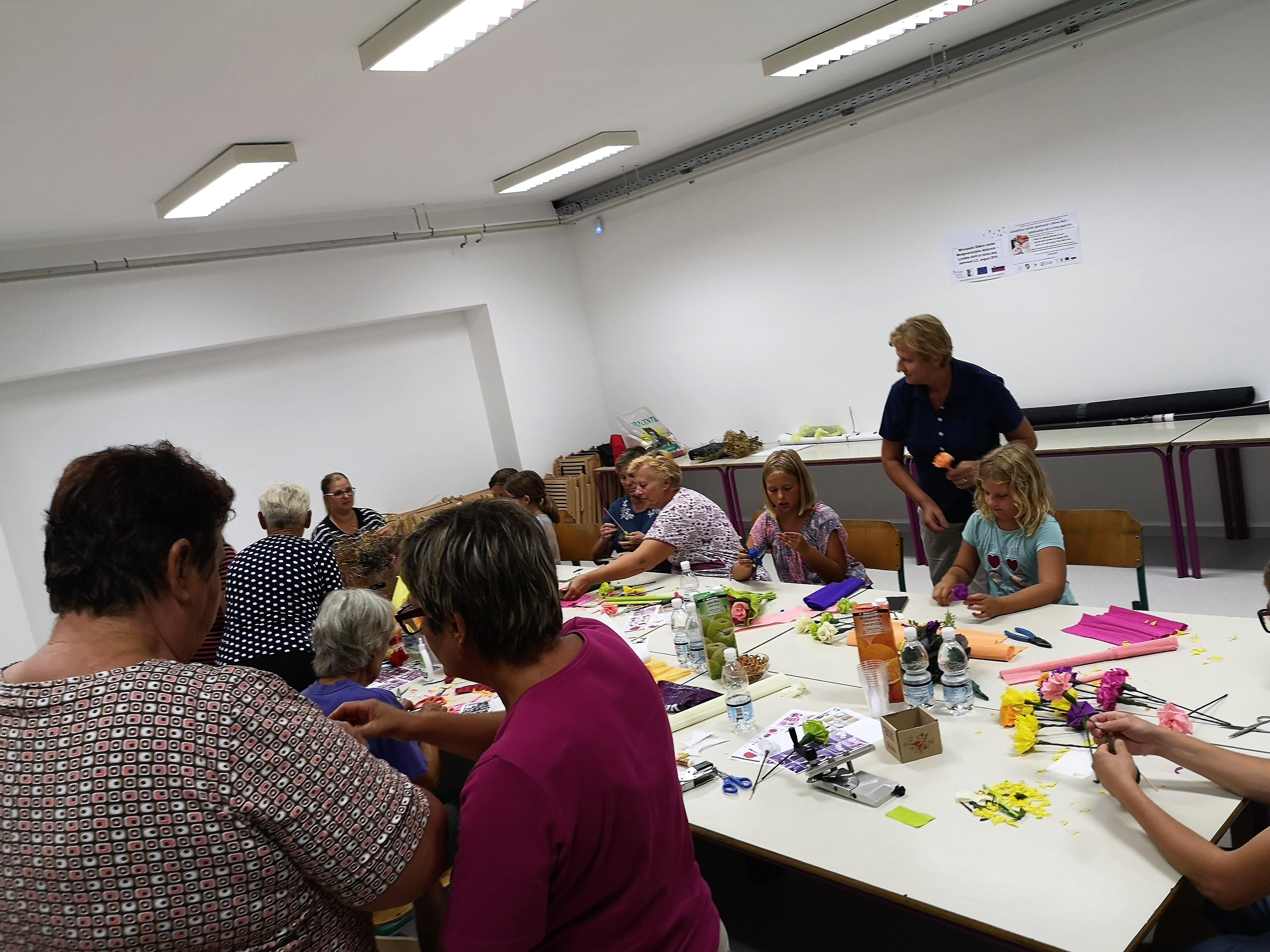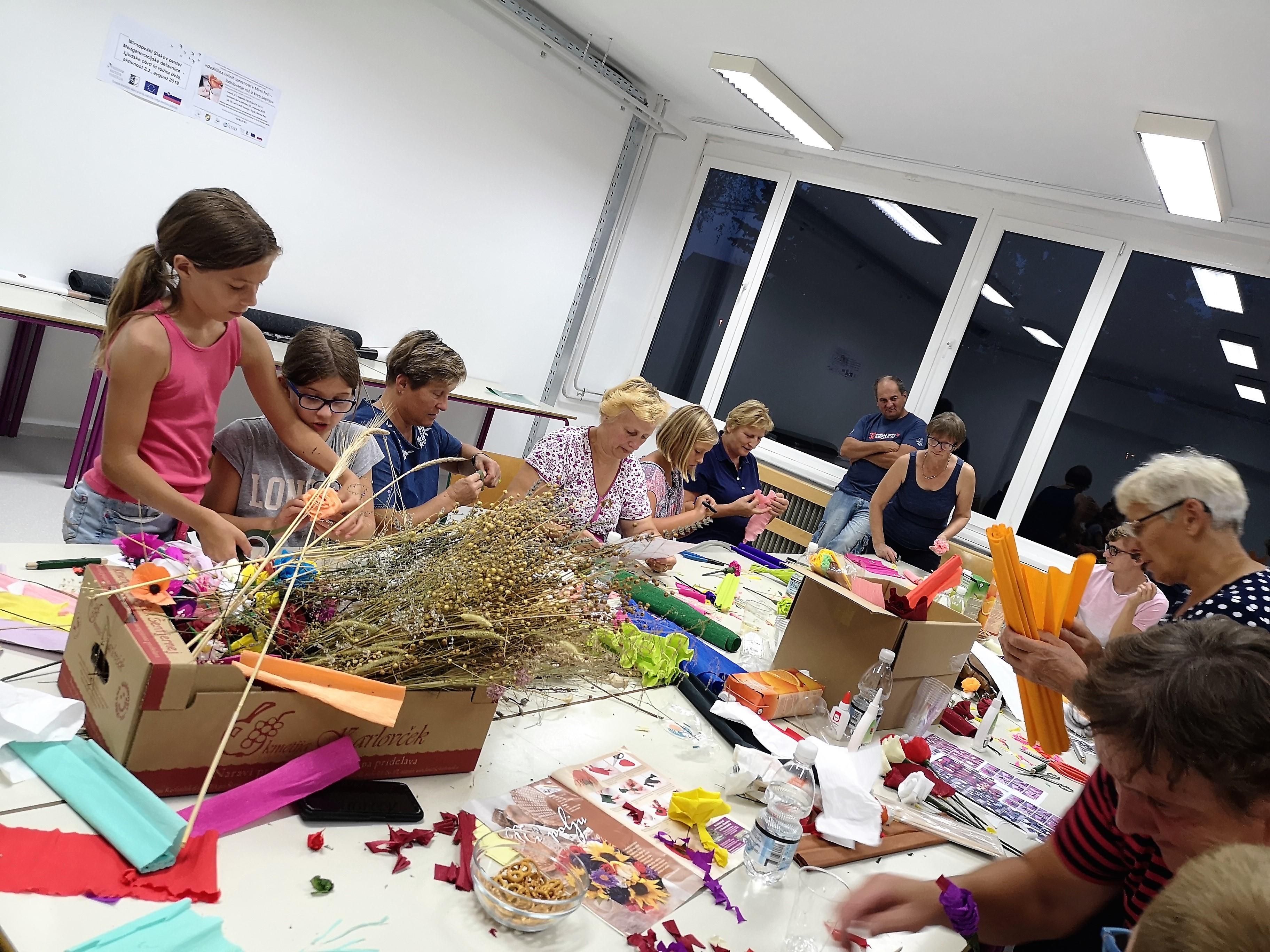 Ustvarjalne medgeneracijske delavnice z razstavo del izdelovanja rož iz krep papirja in naravnih materialov