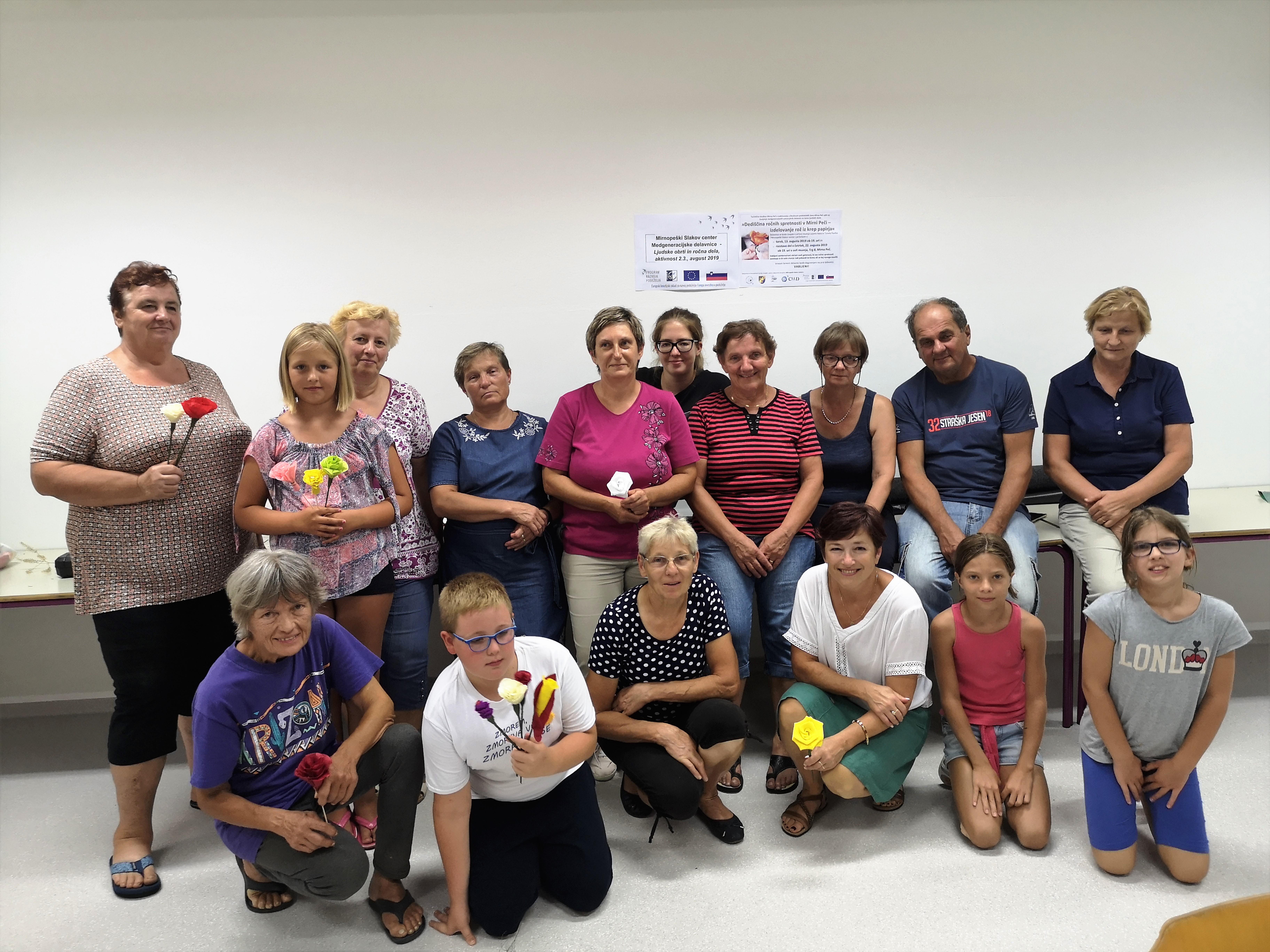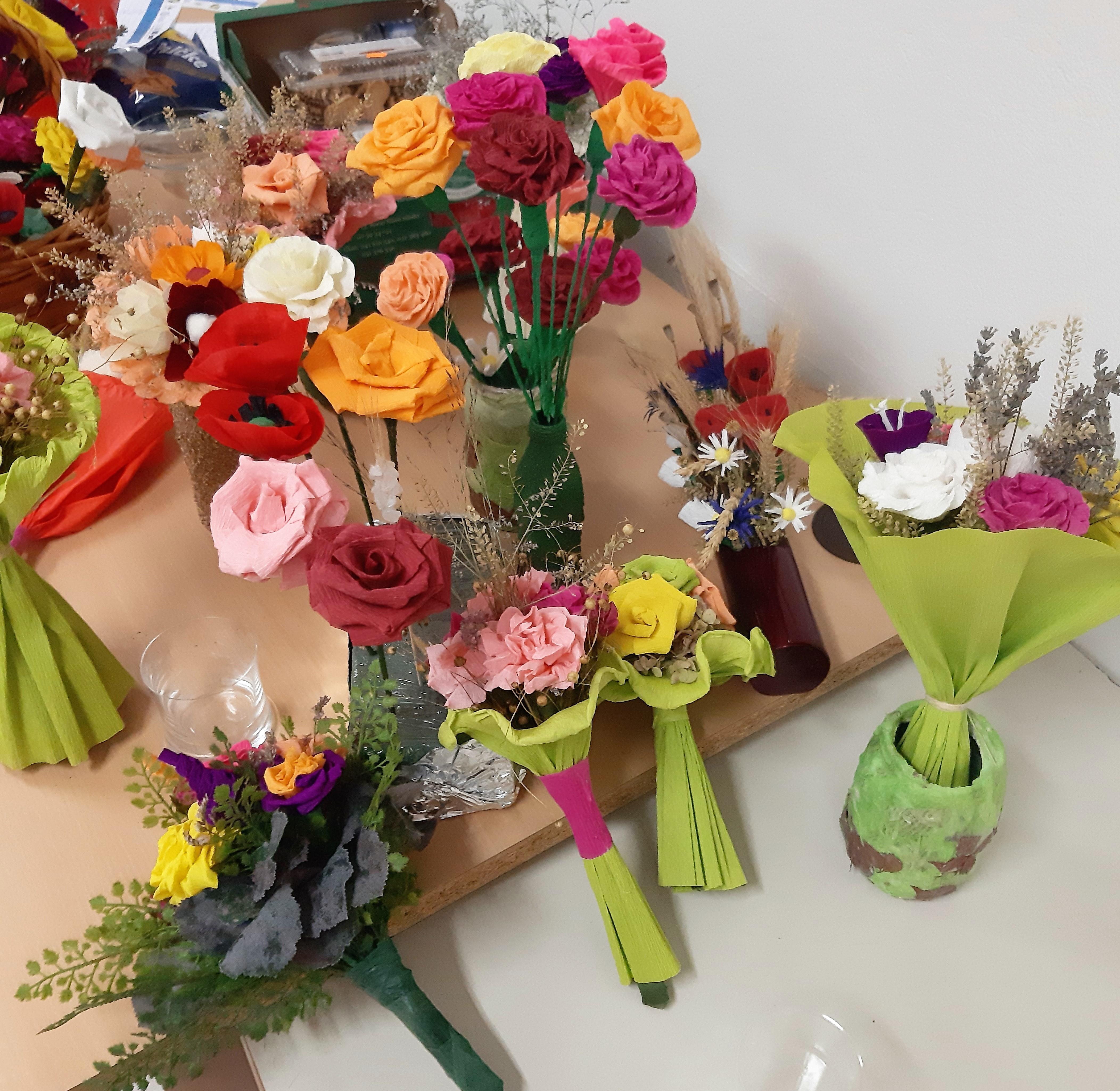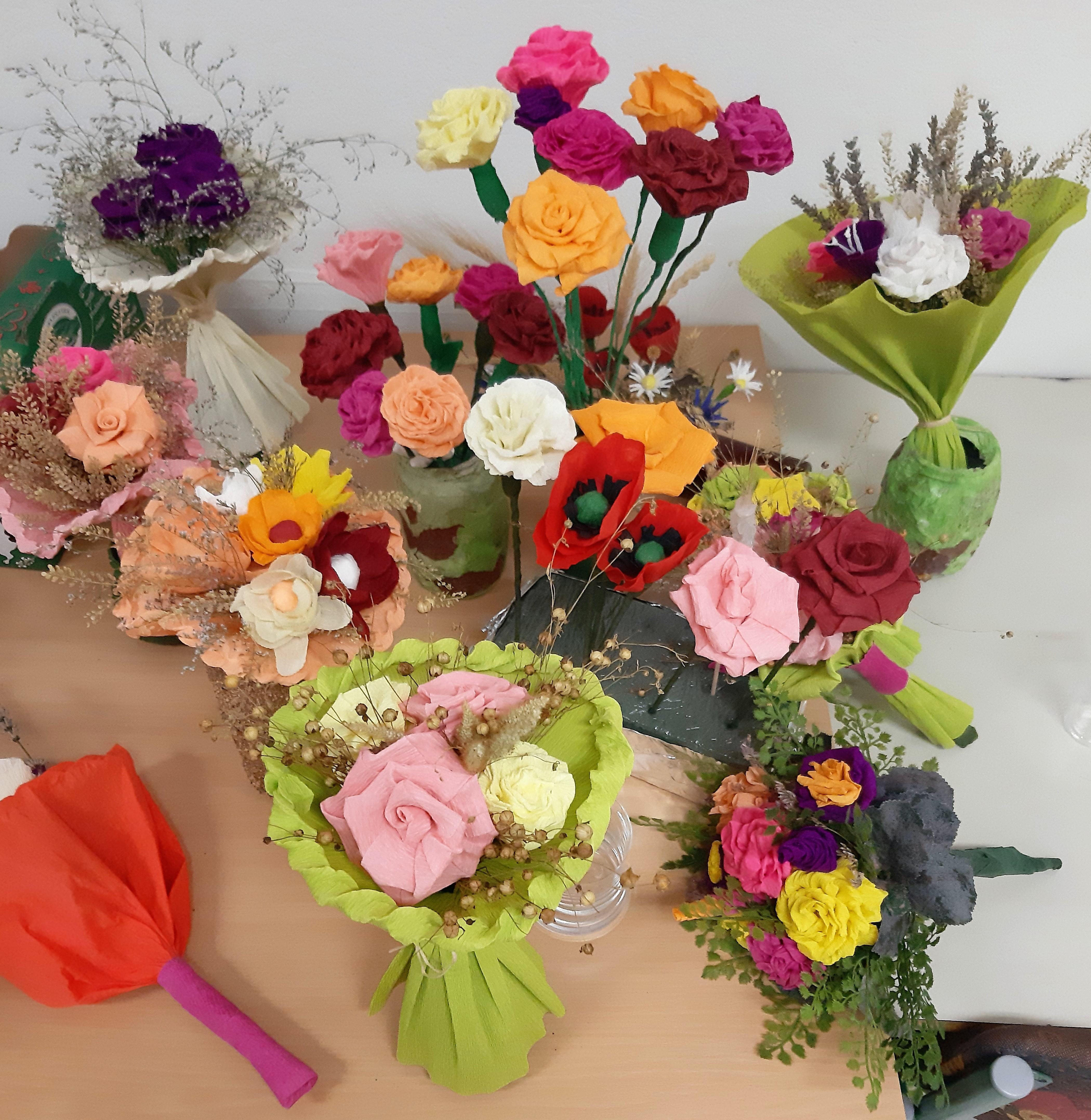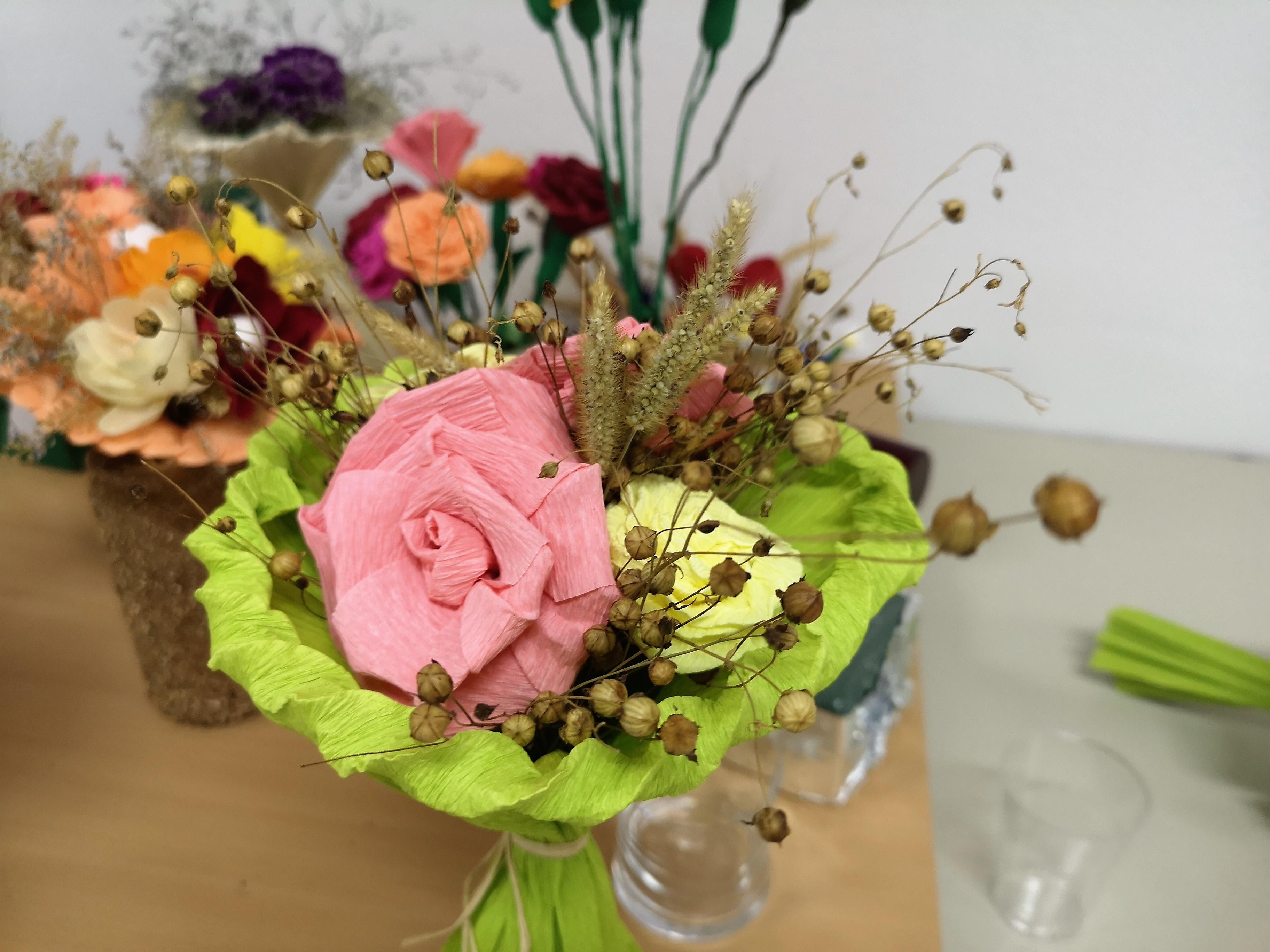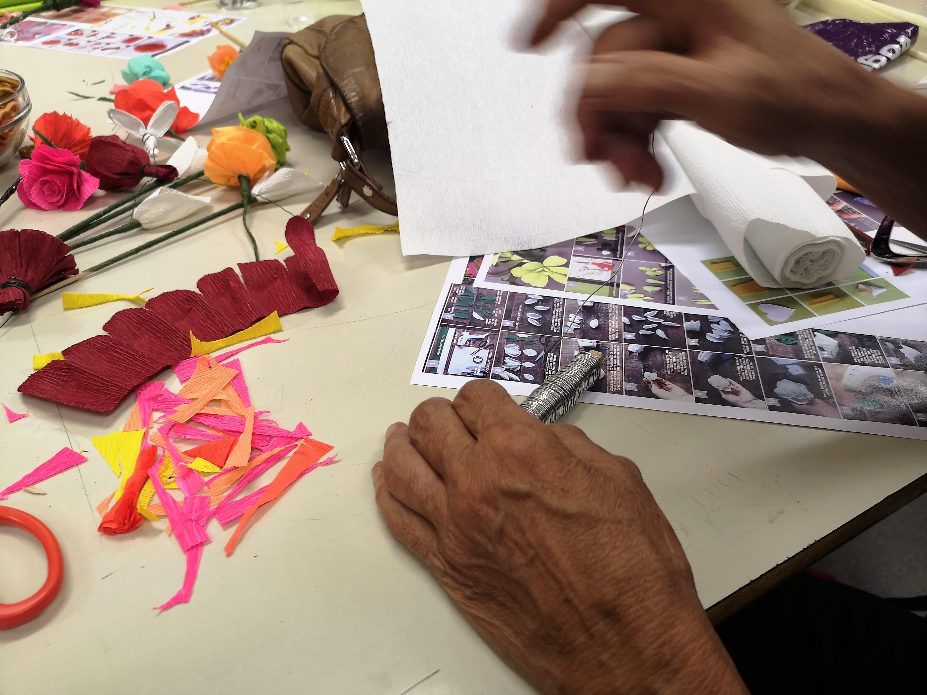 Ustvarjalne medgeneracijske delavnice z razstavo del izdelovanja rož iz krep papirja in naravnih materialov