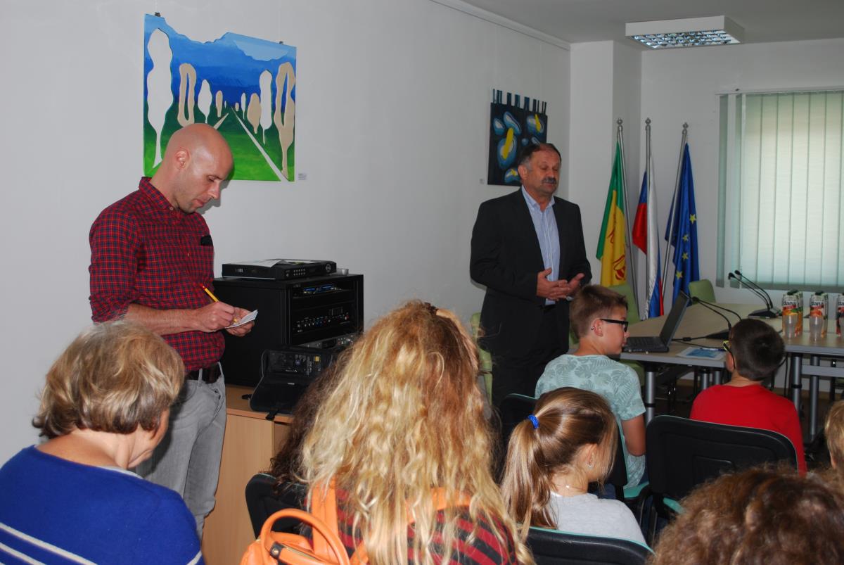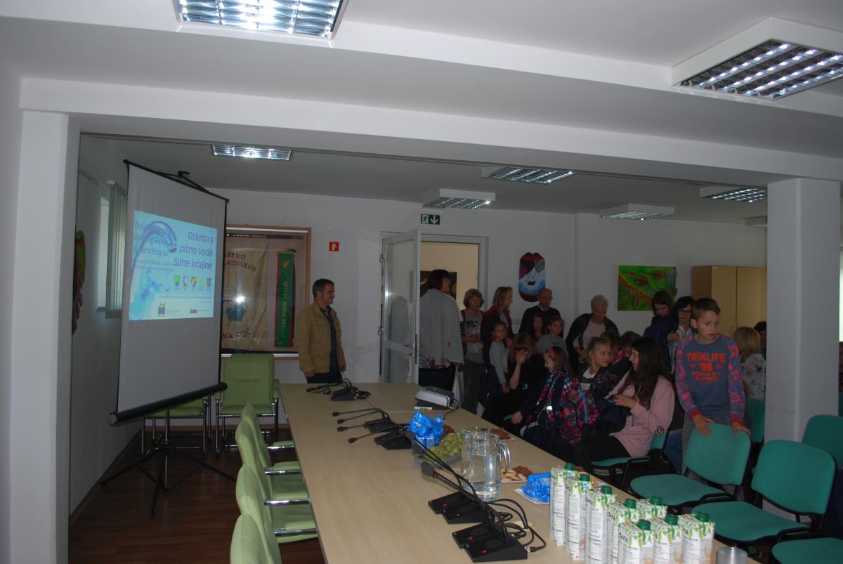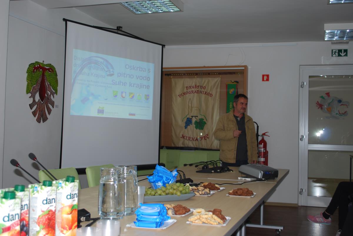Gostje so kasneje prišli v prostore občine, kjer jih je prijazno sprejel in nagovoril župan, Andrej Kastelic. Po nagovoru je sledila predstavitev projekta "Oskrba s pitno vodo Suhe krajine" s strani Andreja Kastelica, višjega svetovalca za komunalno, cestno, gospodarsko in investicijsko dejavnost, predstavil projekt.