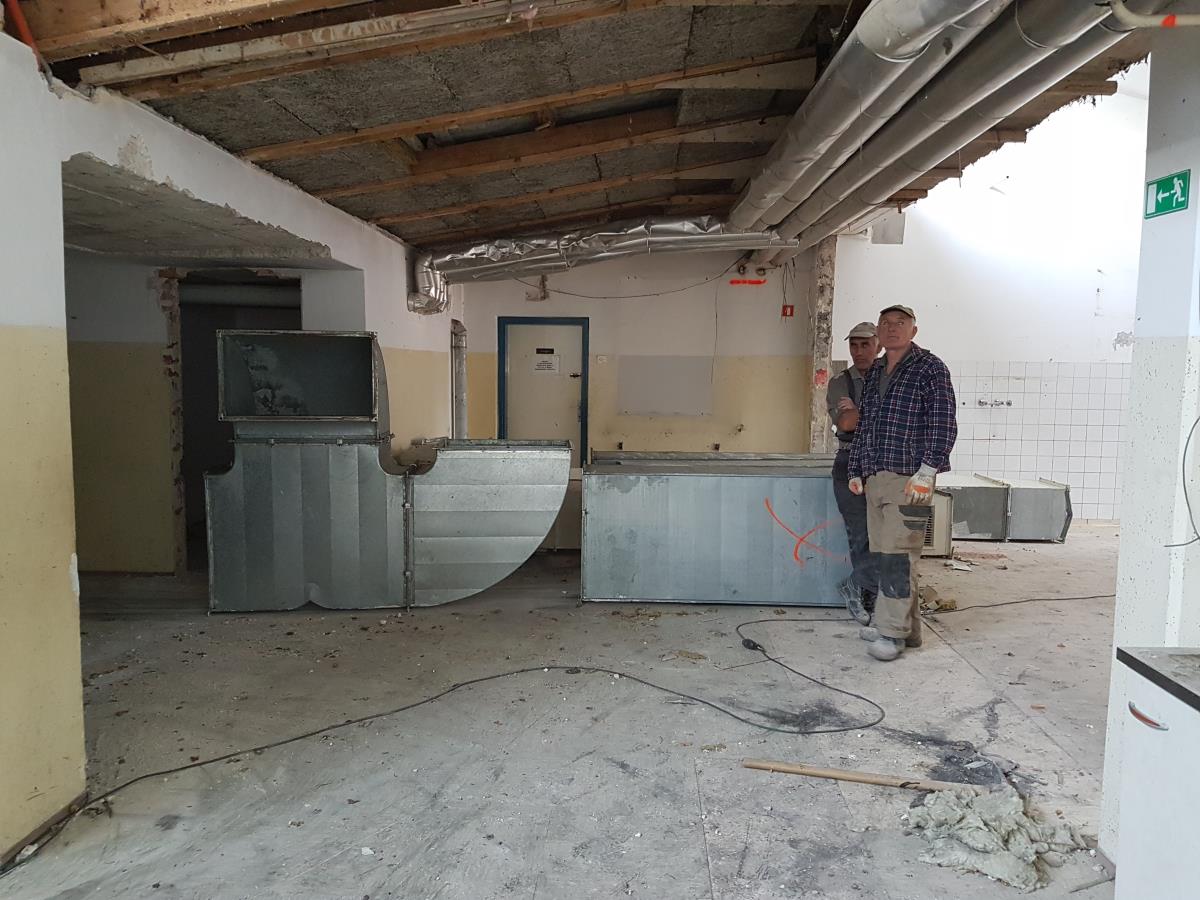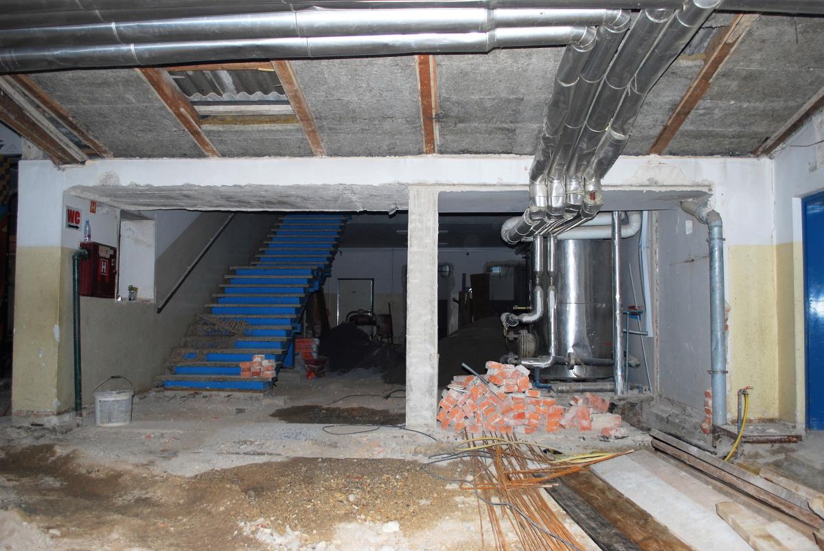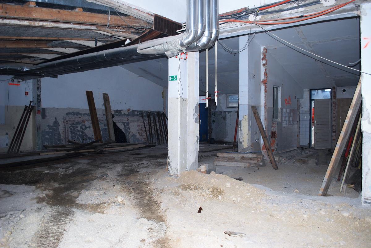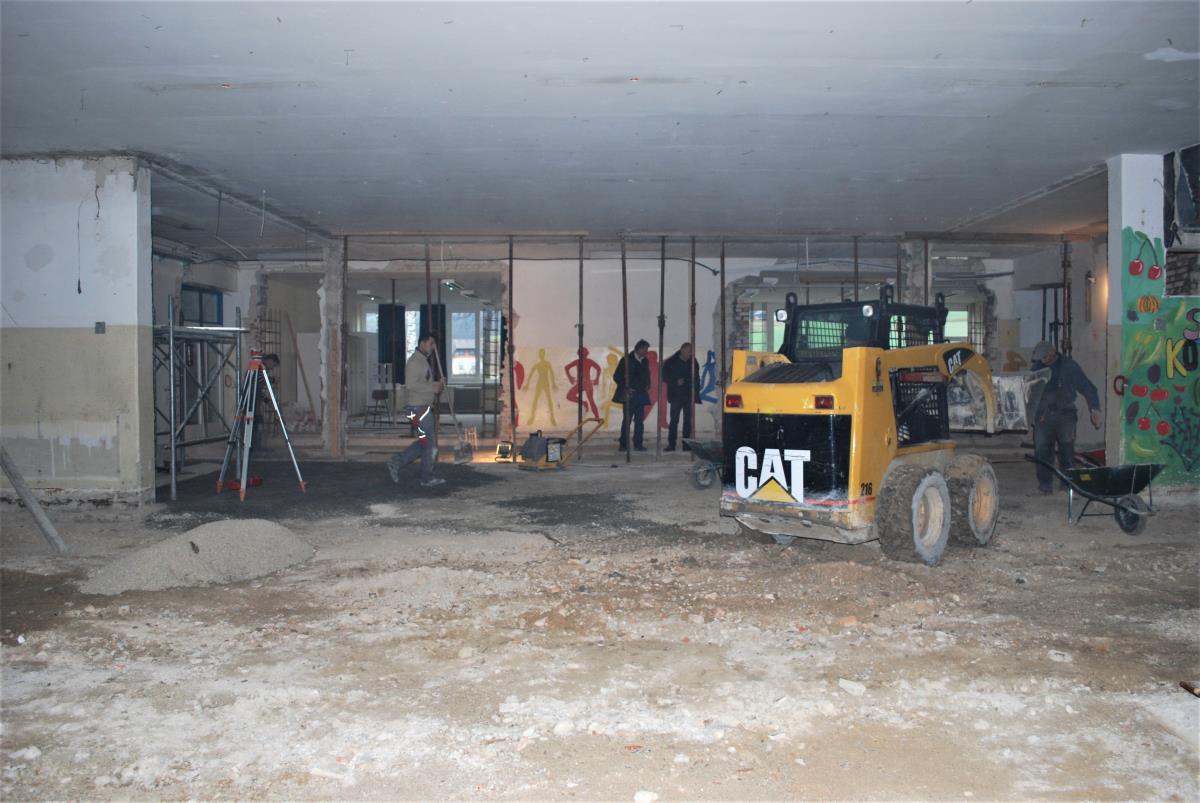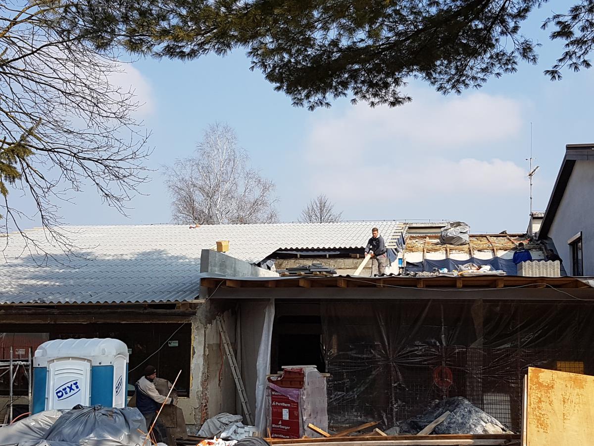 Po opravljenih pripravljalnih in odstranitvenih delih v preteklem letu je izvajalec As-Primus v januarju letošnjega leta nadaljeval z deli v notranjosti objekta: grobe električne inštalacije, strojne inštalacije, položitev talnega gretja. Ob toplejšem vremenu v mesecu februarju je izvajalec začel še z zamenjavo oken in ostalih del stavbnega pohištva ter z ureditvijo strehe (izvedba nove konstrukcije za dvig strehe, toplotne izolacije in obnova kritine), konec meseca marca pa z zaključnimi deli tal: polaganje estriha in terazza.
