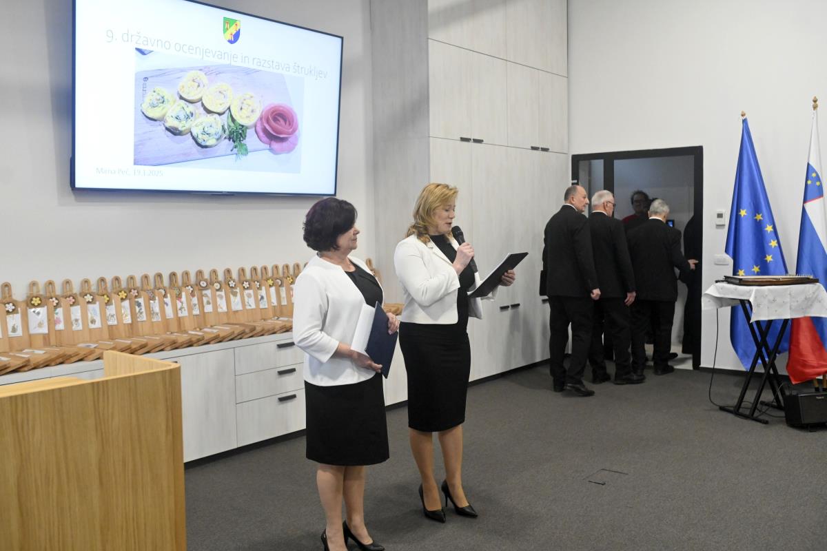 Uvodoma je vse goste in zbrane obiskovalce nagovorila Jelka Krivec, predsednica Društva podeželskih žena Mirna Peč. Zbrane so z nagovorom pozdravili še dr. Nataša Pirc Musar, predsednica Republike Slovenije, Irena Ule, predsednica Zveze kmetic Slovenije, ter Andrej Kastelic, župan Občine Mirna Peč. Letošnja razstava je razstava presežkov: ne le zavoljo obiska predsednice države, ampak tudi zaradi števila vzorcev: dve komisiji sta morali biti sila pridni, da sta ocenili kar 99 prispelih štrukljev. Na slovesni prireditvi, potekala je obnovljeni stavbi občinske uprave, so podelili 63 zlatih priznanj (8 takih z vsemi možnimi točkami), 31 srebrnih, dve bronasti in tri zahvale.