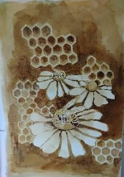 Slikarska dela na razstavi so tematsko povezana z vinogradništvom in čebelarstvom v Mirni Peči.