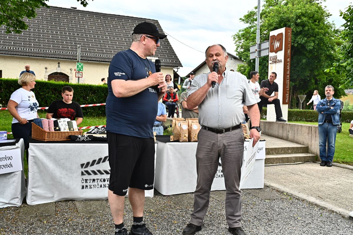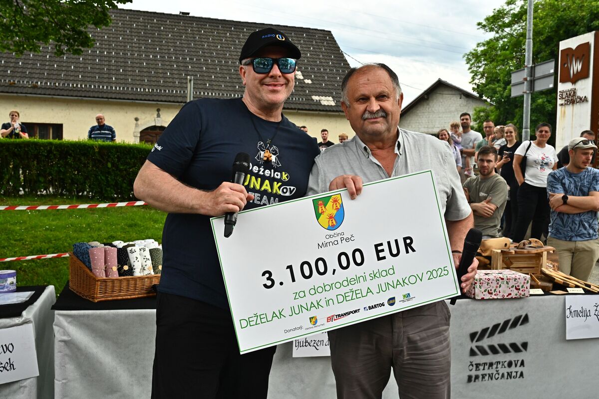 „Lep dober dan vsem: tako našim gostom kot organizatorjem Kulturnemu društvu Četrtkova brenčanja, ki je skupaj z društvi pripravilo druženje. Hvala vsem, pri nas v Mirni Peči živimo kot eno. Veseli smo, ker smo, ker nas je obiskal Deželak Junak. Mi smo se potrudili po svojih močeh ter skupaj s podjetji v naši industrijski coni zbrali nekaj sredstev za otroke v stiski,“ je povedal župan Andrej Kastelic, ki je Deželaku junaku izročil ček za 3100 evrov, svoje prihranke pa so Deželaku Junaku izročili številni otroci.
