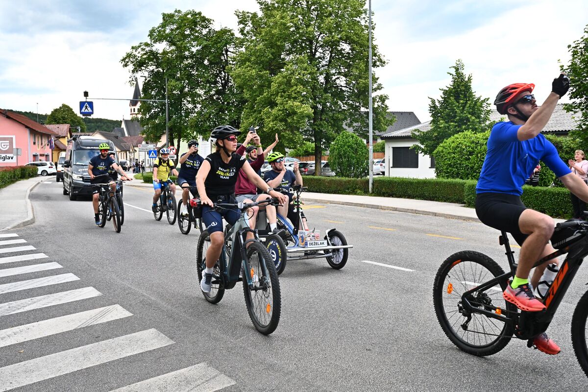 „Hvala vam, vsak kilometer šteje, vsak kovanček šteje,“ je bil jasen naš gost, ki je z ekipo nekaj prigriznil, potem pa nadaljeval pot proti Novemu mestu, na kolesu pa ga je spremljala iz Mirne Peči naprej Jasna Kuljaj.