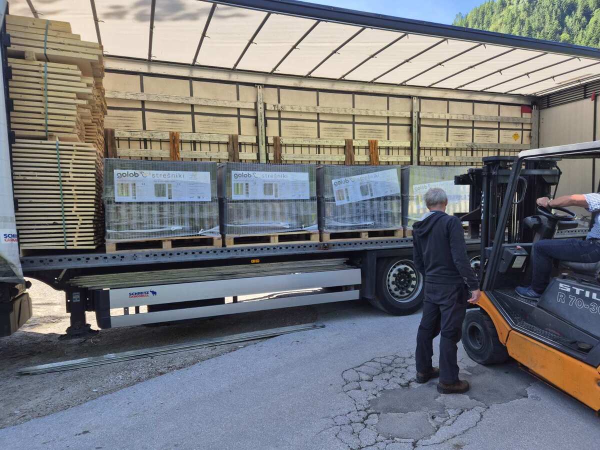 Strešno kritino je prispevalo podjetje Strešnik Golob iz Industrijske cone Mirna Peč, les za ostrešje GG Novo mesto d.d., organizacijo in prevoz pa bo krila občina Mirna Peč. Pomoč je konec maja prispela v Luče, predaje pa so se udeležil Andrej Kastelic, župan občine Mirna Peč, Miha Zupančič, direktor GG NM in Marjan Golob, lastnik in predstavnik podjetja Strešnik Golob.