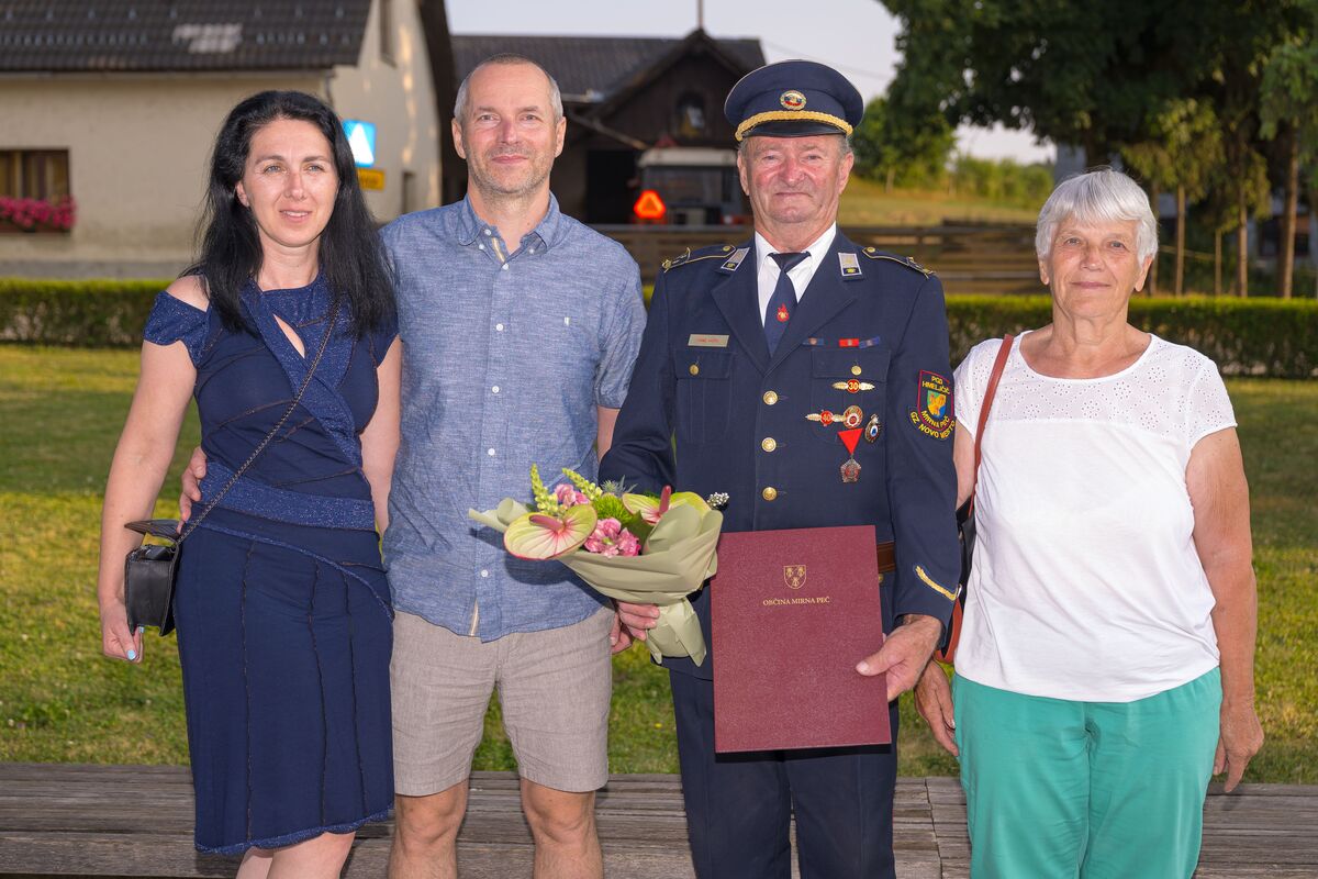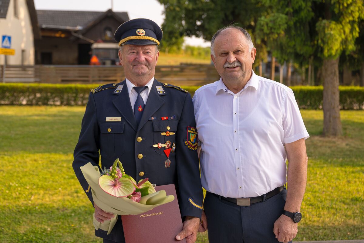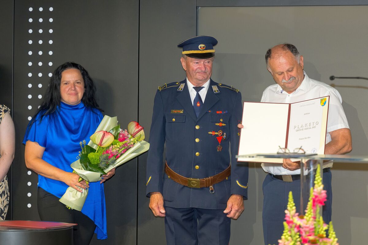 Francu Kavšku se za njegovo 56-letno prostovoljno delo na področju gasilstva v Hmeljčiču, njegov prispevek k razvoju društva in operativne dejavnosti, nesebično pomoč pri gašenju požarov, redarske službe in ostalih aktivnosti v širšem okolju, podeljuje Plaketa Občine Mirna Peč.