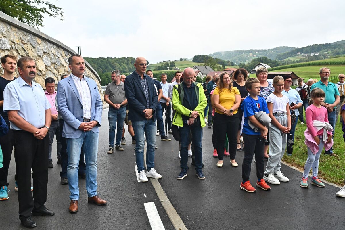 Današnje slovesne otvoritve so se udeležili mag. Andrej Rajh, državni sekretar na Ministrstvu za infrastrukturo, Uroš Brumec, vodja Sektorja za vzdrževanje, varstvo cest in prometno varnost, Nataša Panič, vodja nadzora pri DRI, Vida Čadonič Špelič, poslanka Državnega zbora RS, Andrej Kastelic, župan Občine Mirna Peč, Janko Zakrajšek, direktor občinske uprave Občine Trebnje, Sonja Klemenc Križan, direktorica občinske uprave Občine Mirna Peč, člani občinskega sveta Občine Mirna Peč ter domačini. Nov objekt je blagoslovil tudi domači župnik Blaž Franko.