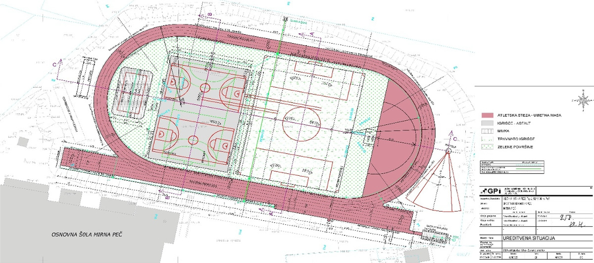 Cilj investicije v I. fazi je izvedba celovite prenove večnamenskega športnega igrišča, vključno z novo asfaltno površino za košarko in rokomet z dimenzijsko uskladitvijo po veljavnih standardih, ureditvijo igrišča za odbojko na mivki, preureditvijo atletske steze v dolžini 300 m in izvedbo dodatnih stez za teke na 60 in 100 m s tartan podlago skladno s pravili AZS in IAAF, ureditvijo površin za skok v daljino, skok v višino, met krogle in igranje petanke, prenovo travnatega nogometnega igrišča z namestitvijo naravnega travnega tepiha in vgradnjo zalivalnega sistema, ureditvijo drenažnega in odvodnjavalnega sistema za vse površine, pove in pojasni Sonja Klemenc Križan, direktorica Občinske uprave Občina Mirna Peč.