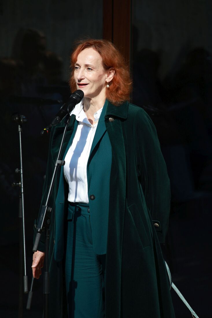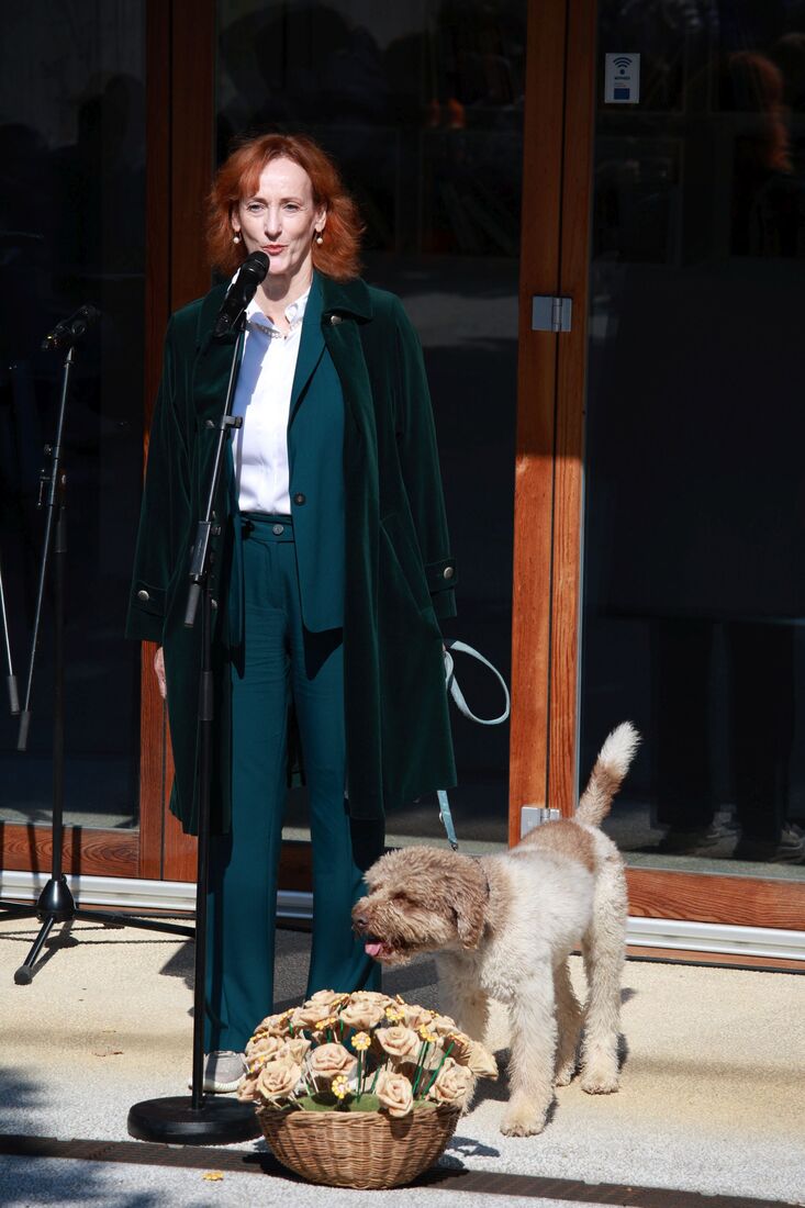 »Pozdravljeni vsi, čestitam vsem nastopajočim – od najmlajših do najstarejših. Odlični ste bili, uživala sem. Čestitam mladi pesnici za čudovito pesem, čestitam tretješolcem za skupinsko recitacijo, pa tudi pevki za dve tako lepo zapeti pesmi. Hvala pevskemu zboru in Ljudmili Bajc. Hvaležna sem, ker ohranjate spomin na Toneta Pavčka in ker radi prihajate v Pavčkov dom in muzej. Najbolj pa me veseli, da ustvarjate, ste radoživi in radovedni. Vesela sem, da vaščani in Občina Mirna Peč tako lepo skrbijo za Pavčkov dom in da otroci radi recitirajo pesmi Toneta Pavčka. Zelo rada pridem sem, saj imam na Šentjurij lepe spomine iz otroštva.«