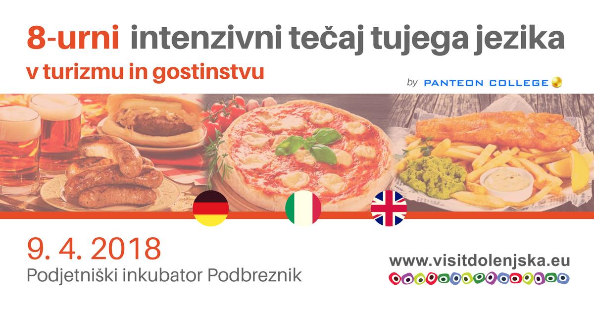 Razvojni center Novo mesto in občine Šmarješke Toplice, Mirna Peč, Šentrupert, Škocjan, Žužemberk in Šentjernej organizirajo 8-urni intenzivni tečaj angleščine, nemščine in italijanščine. Delavnice so namenjene zaposlenim v turistični dejavnosti. Osnova programa so simulacije realnih situacij in jezikovni treningi tipičnih dialogov. Udeležencem omogočajo spontano rabo angleščine v vseh govornih situacijah. Vodena konverzacija zagotavlja tekočo komunikacijo na ključnih področjih – od strežbe, recepcije in kuhe pa do prodaje in animacije. Zaradi omejenega števila mest je intenzivnost učenja hitrejša in učinkovitejša.