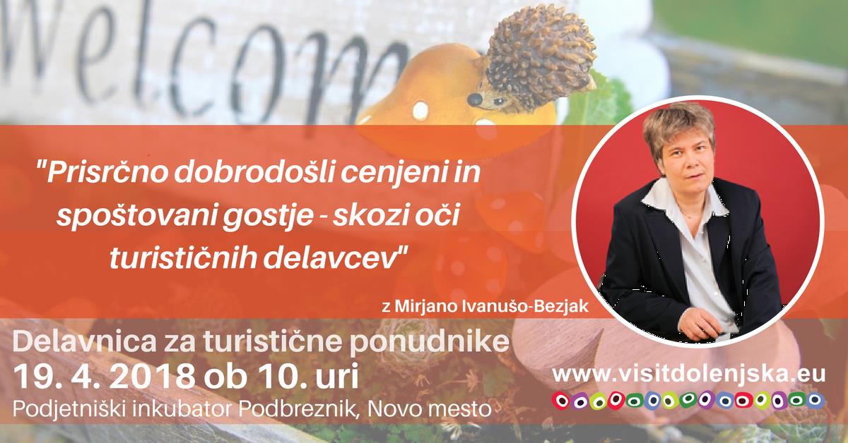 Razvojni center Novo mesto d.o.o. in občine Šmarješke Toplice, Mirna Peč, Šentrupert, Škocjan, Žužemberk in Šentjernej organizirajo delavnico za turistične ponudnike. Na delavnici se boste lahko poučili o tem, kako gostu zagotoviti čimboljšo izkušnjo, celoten program delavnice si lahko ogledate na spletni strani Visit Dolenjska.