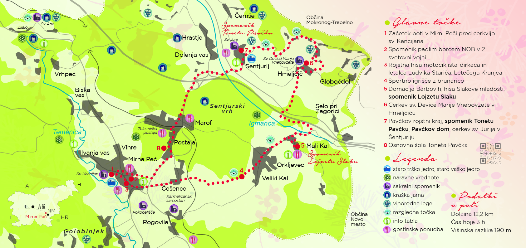 Traso poti si lahko ogledate na spletni strani Turističnega društva Mirna Peč.