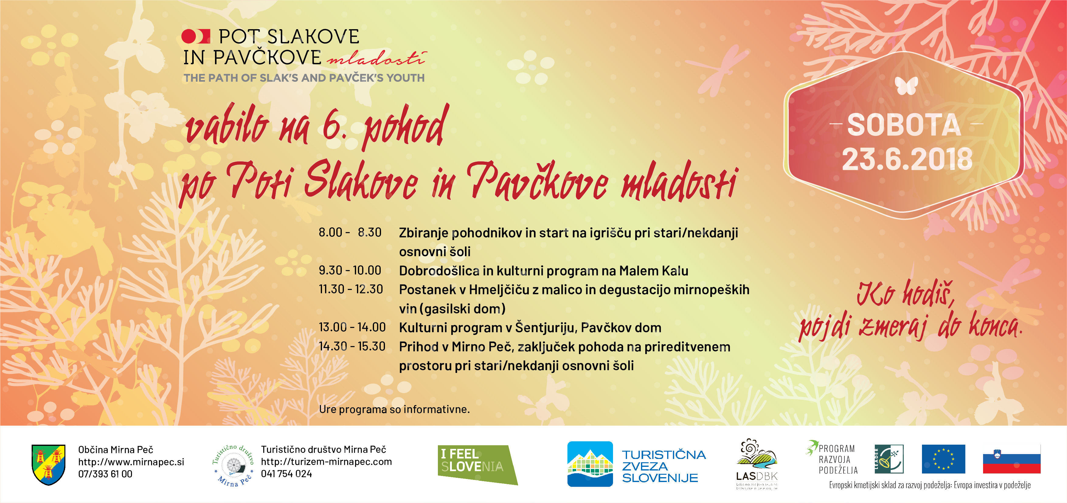 6. pohod po POTI SLAKOVE IN PAVČKOVE MLADOSTI, ki bo v soboto, 23. junija 2018.
