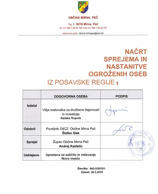 Načrt sprejema in nastanitve ogroženih oseb ter načrt prevzema in razdelitve tablet kalijevega jodida