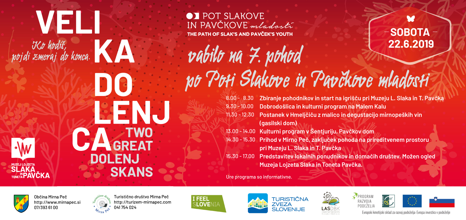 7. pohod po POTI SLAKOVE IN PAVČKOVE MLADOSTI, ki bo v soboto, 22. junija 2019.