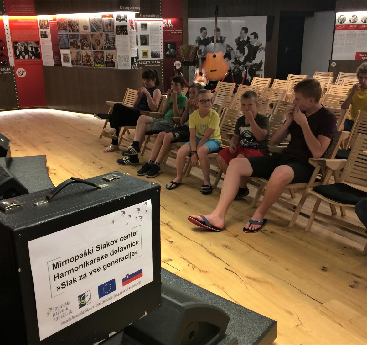 V času od 4. do 12.7.2019 so v okviru projekta »Mirnopeški Slakov center« v prostorih Muzeja Lojzeta Slaka in Toneta Pavčka potekale harmonikarske delavnice z naslovom »Slak za vse generacije«. Delavnice so potekale v dopoldanskem in popoldanskem času.