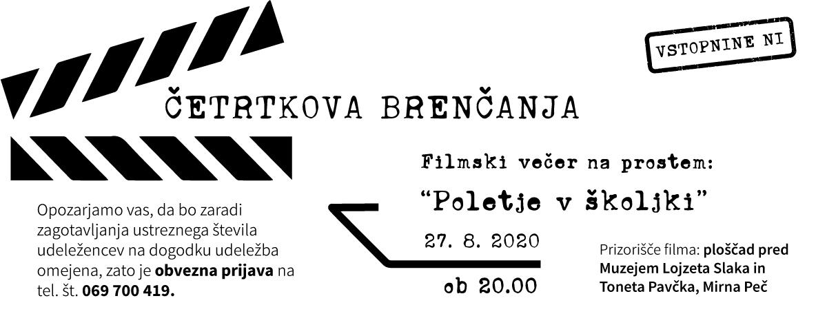 Zadnji četrtek v avgustu, 27.8.2020 ob 20.uri, na ploščadi pred muzejem Lojzeta Slaka in Toneta Pavčka.