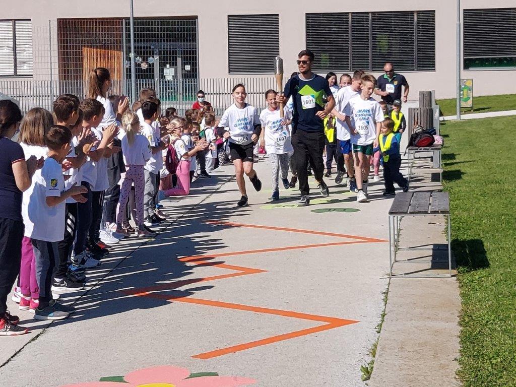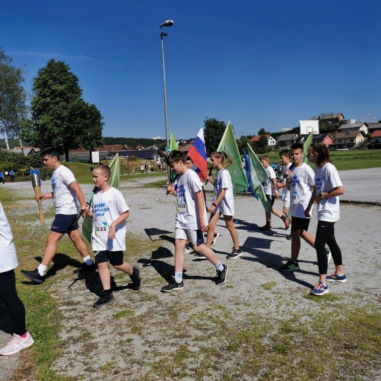 Od šole proti naselju Češence je baklo ponesel mirnopeški tekmovalec tajskega boksa Rok Eršte, od tam proti Muzeju Lojzeta Slaka in Toneta Pavčka pa mirnopeški kolesar Blaž Jarc, ki je štafeto predal najboljšemu športniku šole Aleksu Smoliču in najboljši športnici šole Tii Lužar. Od muzeja čez center Mirne Peči in nazaj proti šoli je baklo nesel mirnopeški tekač Mitja Krevs.