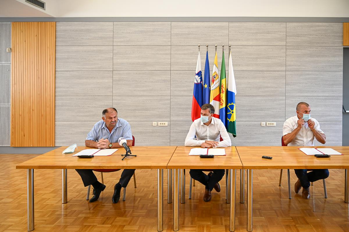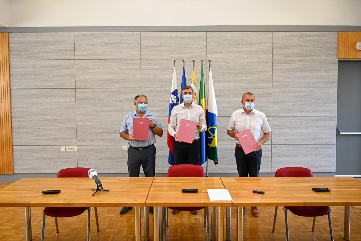 Danes, 11. avgusta 2021, ob 10. uri so v Kulturnem domu Straža Podpisali Sporazum o sofinanciranju in skupni uporabi Medobčinskega zbirnega centra za ravnanje z odpadki v Gospodarski coni Zahod – 1. faza župan Mestne občine Novo mesto Gregor Macedoni, župan Občine Mirna Peč Andrej Kastelic in župan Občine Straža Dušan Krštinc.