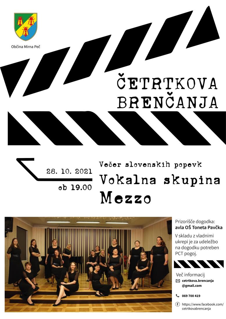 ČETRTKOVA BRENČANJA V MIRNI PEČI - VEČER SLOVENSKIH POPEVK Z VOKALONO SKUPINO MEZZO