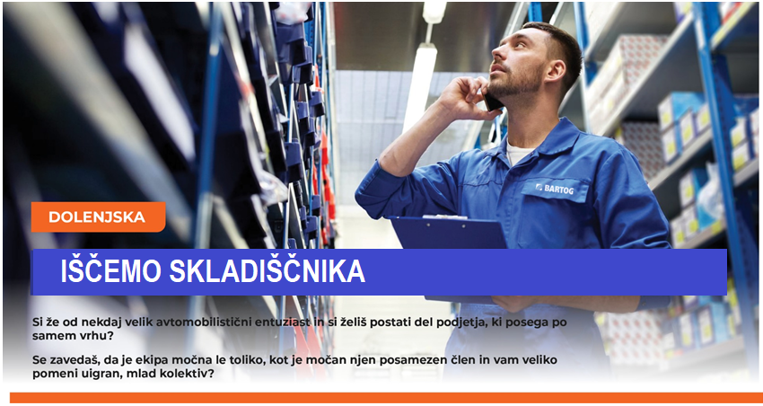 Pisne vloge s pripisom »skladiščnik« (Mirna Peč) « pošljite na zaposlitev@bartog.si