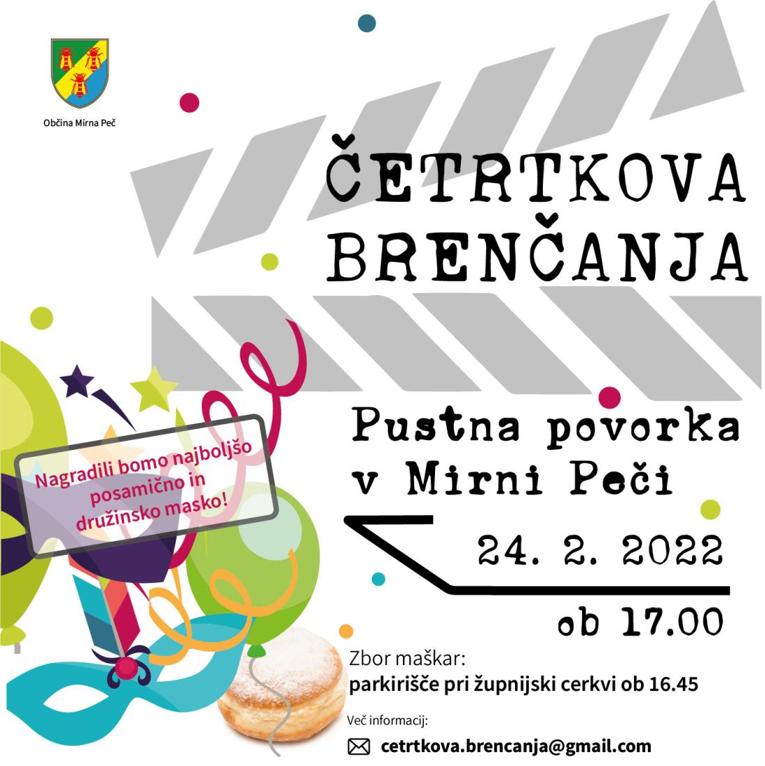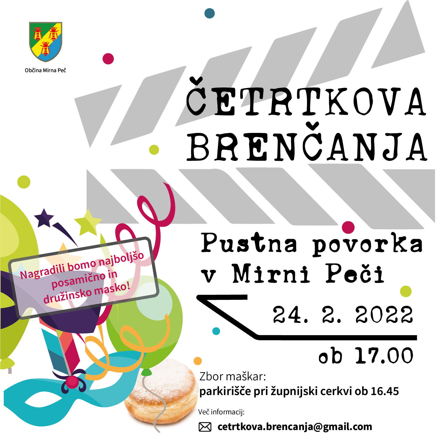 Kulturno društvo Četrtkova brenčanja v Mirni Peči vabi vse maškare na pustno povorko, ki bo v četrtek, 24. februarja, ob 17. uri v Mirni Peči. .jpg.jpg)