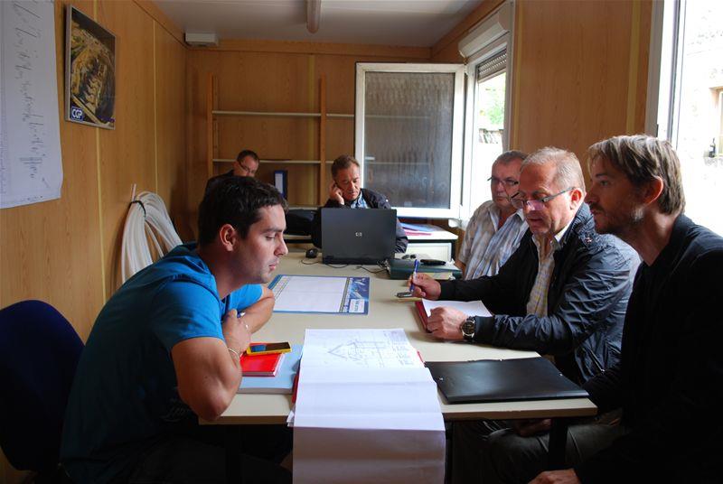 Po uspešno zaključenem postopku izbire izvajalca je bila 17. februarja 2014 s podjetjem CGP, d.d., podpisana pogodba o izgradnji večnamenskega objekta v Šentjuriju,v začetku meseca marca je izvajlec izvedel rušitev nekdanje objekta mlekarne, ob izkopu gradbene jame pa se je pokazalo, da je potrebno pred začetkom del pripraviti nove podlage za temeljenje objekta zaradi prisotnosti vode. Prav tako pa se je ugotovilo neskladje med uradno vrisanim potekom lokalne ceste na južni strani zemljišča in potekom ceste v naravi. Da bi zagotovili varno uporaba ceste tako z osebnimi vozili kot s traktorji in večjo kmetijsko mehanizacijo, se je investitor odločil za premik objekta za 1 meter v zemljišče, za kar pa je bilo potrebno predhodno izvesti postopek izravnave meje.