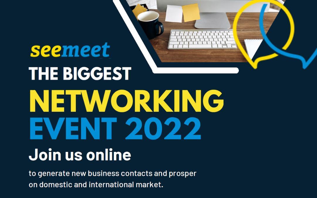 SEEMEET 2022 bo potekal 17. in 18. novembra 2022 preko spleta (prijava) in bo kot vsako leto omogočil možnost do 35 vnaprej organiziranih sestankov. Dogodek bodo popestrila izredno zanimiva Tematska predavanja, ki bodo pokrivala širši spekter tem. Udeleženci se lahko prijavijo bodisi samo na vnaprej dogovorjene sestanke, bodisi samo na predavanja ali pa izkoristijo kar oboje.