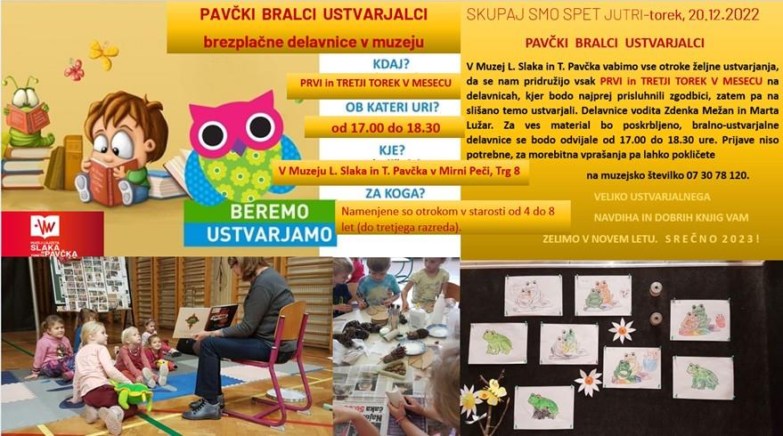 PAVČKI BRALCI USTVARJALCI VABIJO NA DELAVNICO 20.12.2022