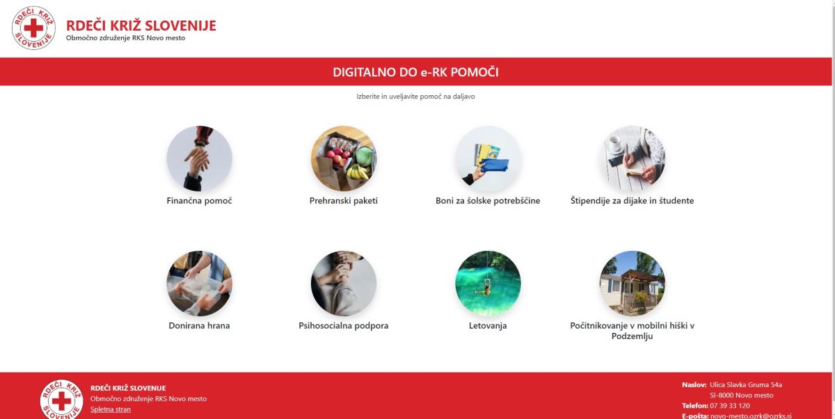 Prosilci iz OZ RKS Novo mesto lahko preko portala zaprosijo za: prehranske pakete, finančno pomoč, donirano hrano, bone za šolske potrebščine, štipendijo za srednješolce in študente, psihosocialno pomoč; prijavijo se na letovanje otrok in počitnikovanje v mobilni hiški v Podzemlju.