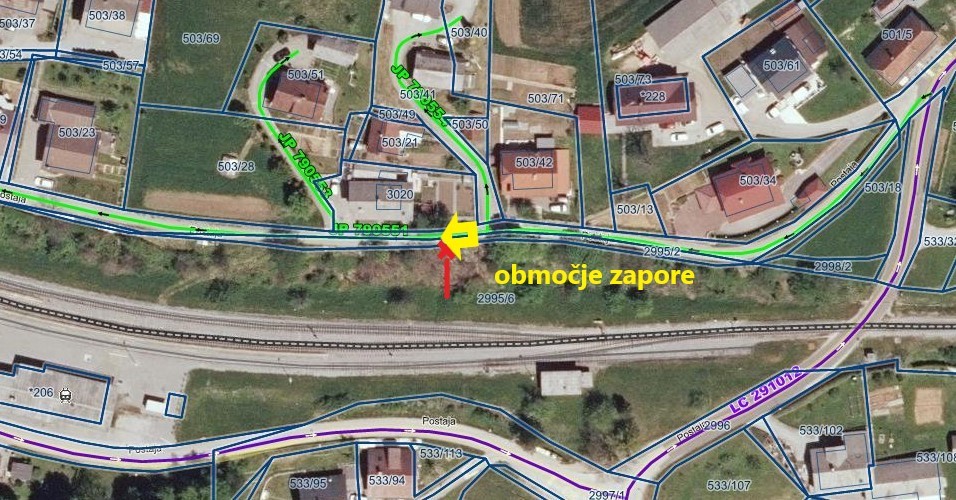 Obveščamo vas, da se zaradi podora brežine in navezujočih se poškodb na občinski cesti JP 790551 (Postaja – od hišne številke Postaja 48 – do hišne številke Postaja 72), zaradi nevarnosti širjenja poškodb na infrastrukturi - loma in zdrsa dela vozišča, ob obremenitvi cestišča s tovornim prometom in nadaljnjih padavinah, in zaradi načrtovanih sanacijskih del, vzpostavlja začasna popolna zapora za tovorni promet.