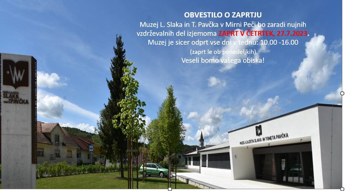 OBVESTILO O ZAPRTJU MUZEJA LOJZETA SLAKA IN TONETA PAVČKA - 27.7.2023