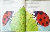 Slikanica pripoveduje o godrnjavi pikapolonici, ki noče deliti listnih uši s prijazno pikapolonico.